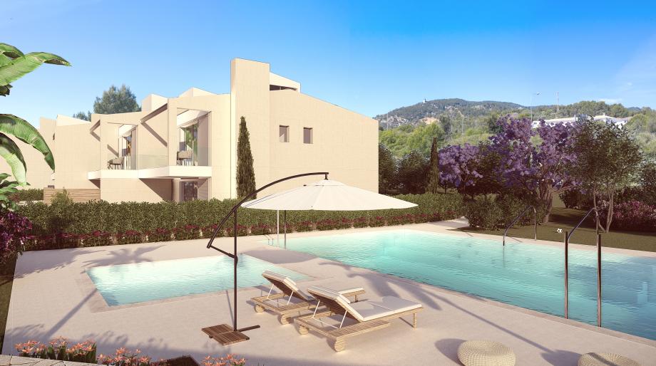 “Ses Fonts” lo conforman 36 viviendas unifamiliares pareadas de las que inicialmente se desarrollará una primera fase de 22 viviendas. Las viviendas tienen orientación sur-este y sur-oeste, cuentan con amplias y luminosas estancias, con vistas al Bosque de Bellver y Castillo y sierra de Na Burguesa