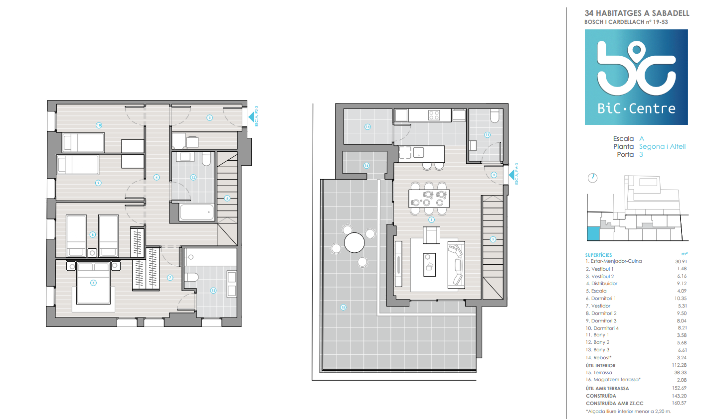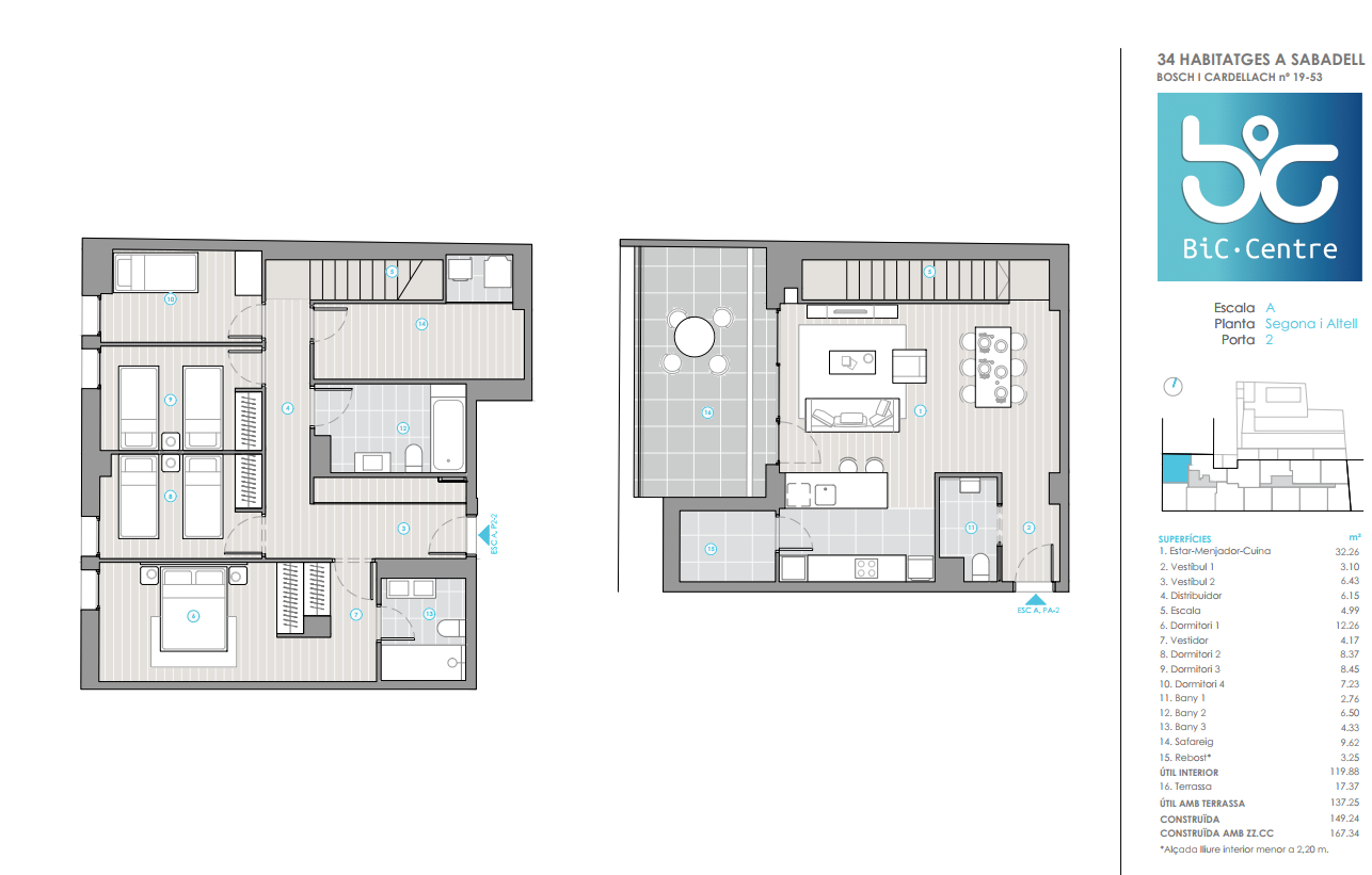 BiC Centre es un pequeño oasis entre las calles del centro de Sabadell, un residencial premium que aúna 34 amplias y luminosas viviendas, que incluyen plaza de garaje y trastero, y cuenta con una exclusiva zona común con piscina y sala comunitaria.