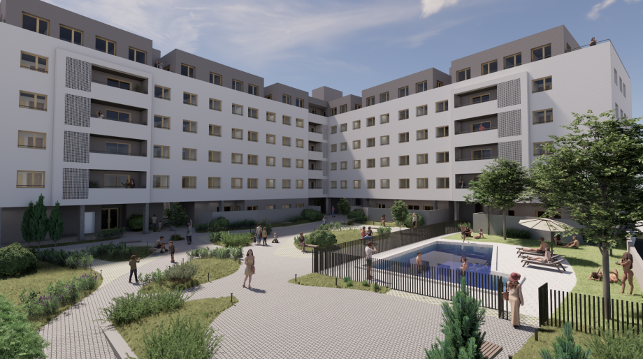 Plutonnial contará con 58 amplias viviendas con terraza y grandes zonas comunes que incluyen piscina, gimnasio, sala multifuncional y espacios ajardinados.